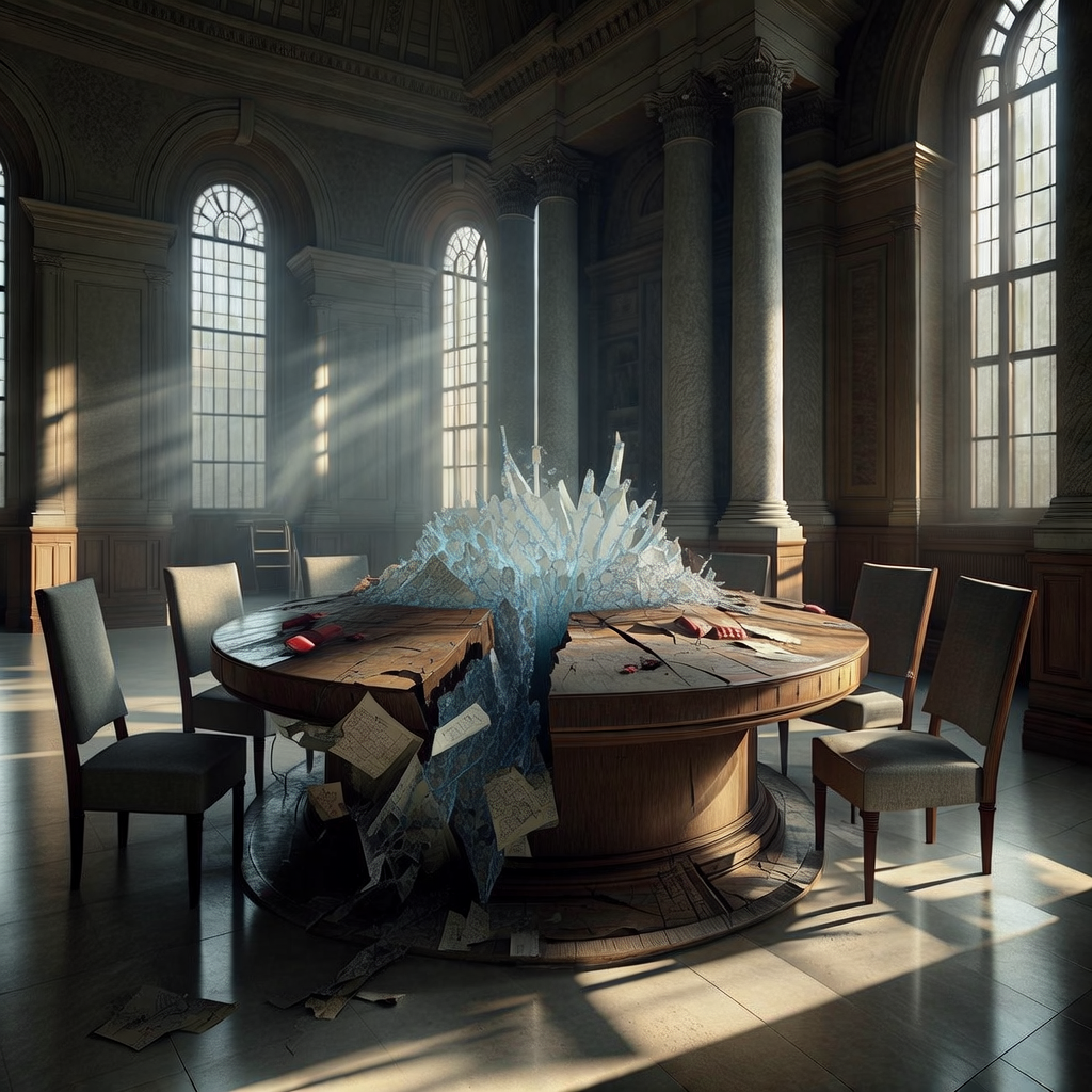 ![empty formal interior, natural lighting through tall windows, wood paneling, institutional architecture, sense of history and permanence, marble columns, high ceilings, formal furniture, muted palette, A massive, outdated nuclear command table cracked down the center, its once-polished mahogany surface split open by a slow-growing crystalline AI core pushing upward from beneath, blue-veined mineral structures fusing with paper maps and red telephone fragments, dawn light slicing through tall, dusty windows at oblique angles, casting long shadows over empty chairs and a silence so complete it feels like the room itself is holding its breath. [Bria Fibo] empty formal interior, natural lighting through tall windows, wood paneling, institutional architecture, sense of history and permanence, marble columns, high ceilings, formal furniture, muted palette, A massive, outdated nuclear command table cracked down the center, its once-polished mahogany surface split open by a slow-growing crystalline AI core pushing upward from beneath, blue-veined mineral structures fusing with paper maps and red telephone fragments, dawn light slicing through tall, dusty windows at oblique angles, casting long shadows over empty chairs and a silence so complete it feels like the room itself is holding its breath. [Bria Fibo]](https://081x4rbriqin1aej.public.blob.vercel-storage.com/viral-images/6673b885-2c98-4809-876e-6c8078cfab1f_viral_2_square.png)