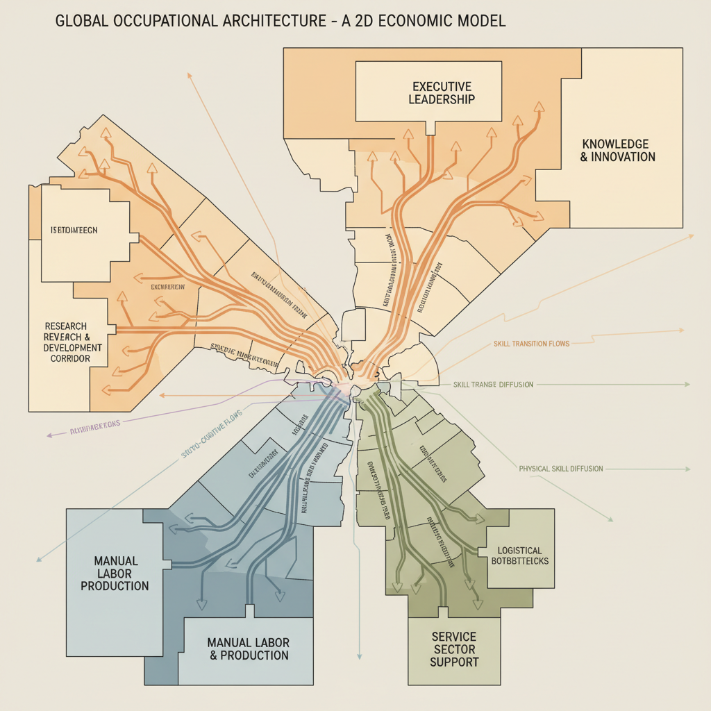 ![flat color political map, clean cartographic style, muted earth tones, no 3D effects, geographic clarity, professional map illustration, minimal ornamentation, clear typography, restrained color coding, flat 2D economic map, sharp boundary lines dividing tiered occupational zones, warm-toned upward pathways branching like highways toward executive and knowledge regions, cool-toned downward routes narrowing into dead-end corridors in manual labor zones, skill transition flows annotated with fine directional lines, muted pastel regions with slight gradient shifts indicating socio-cognitive versus physical skill diffusion, overhead schematic lighting, atmosphere of silent structural inevitability [Nano Banana] flat color political map, clean cartographic style, muted earth tones, no 3D effects, geographic clarity, professional map illustration, minimal ornamentation, clear typography, restrained color coding, flat 2D economic map, sharp boundary lines dividing tiered occupational zones, warm-toned upward pathways branching like highways toward executive and knowledge regions, cool-toned downward routes narrowing into dead-end corridors in manual labor zones, skill transition flows annotated with fine directional lines, muted pastel regions with slight gradient shifts indicating socio-cognitive versus physical skill diffusion, overhead schematic lighting, atmosphere of silent structural inevitability [Nano Banana]](https://081x4rbriqin1aej.public.blob.vercel-storage.com/viral-images/70e7fab1-9a68-4a0a-9c13-66efb0e5d1fb_viral_1_square.png)