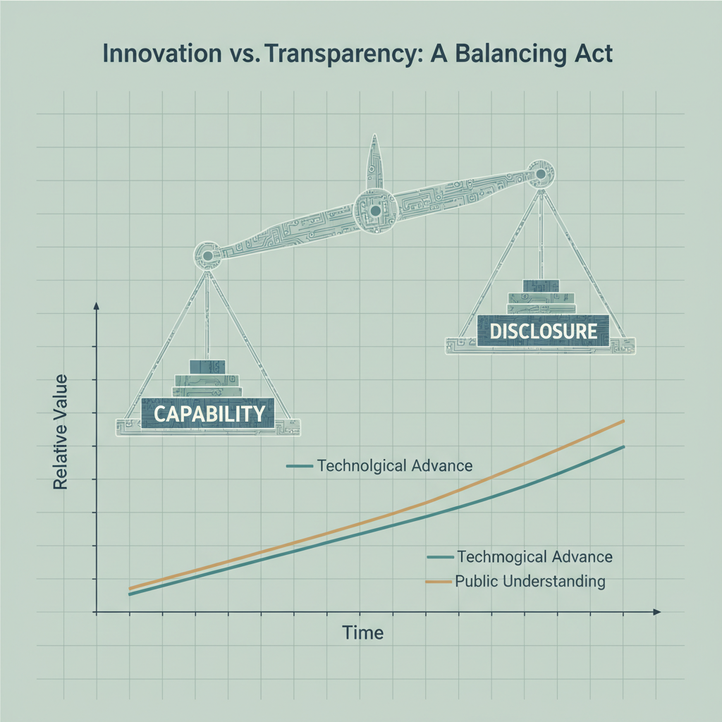 ![clean data visualization, flat 2D chart, muted academic palette, no 3D effects, evidence-based presentation, professional infographic, minimal decoration, clear axis labels, scholarly aesthetic, a scale made of fine, translucent silicon filaments arranged in microcircuit patterns, each tray holding opposing weights labeled 'Capability' and 'Disclosure', lit evenly from above with soft directional light casting precise shadows on a gridded matte surface, atmosphere of quiet precision and measured tension [Nano Banana] clean data visualization, flat 2D chart, muted academic palette, no 3D effects, evidence-based presentation, professional infographic, minimal decoration, clear axis labels, scholarly aesthetic, a scale made of fine, translucent silicon filaments arranged in microcircuit patterns, each tray holding opposing weights labeled 'Capability' and 'Disclosure', lit evenly from above with soft directional light casting precise shadows on a gridded matte surface, atmosphere of quiet precision and measured tension [Nano Banana]](https://081x4rbriqin1aej.public.blob.vercel-storage.com/viral-images/8bbc0e8d-7279-4c33-aedb-6316ed8a39dd_viral_4_square.png)
