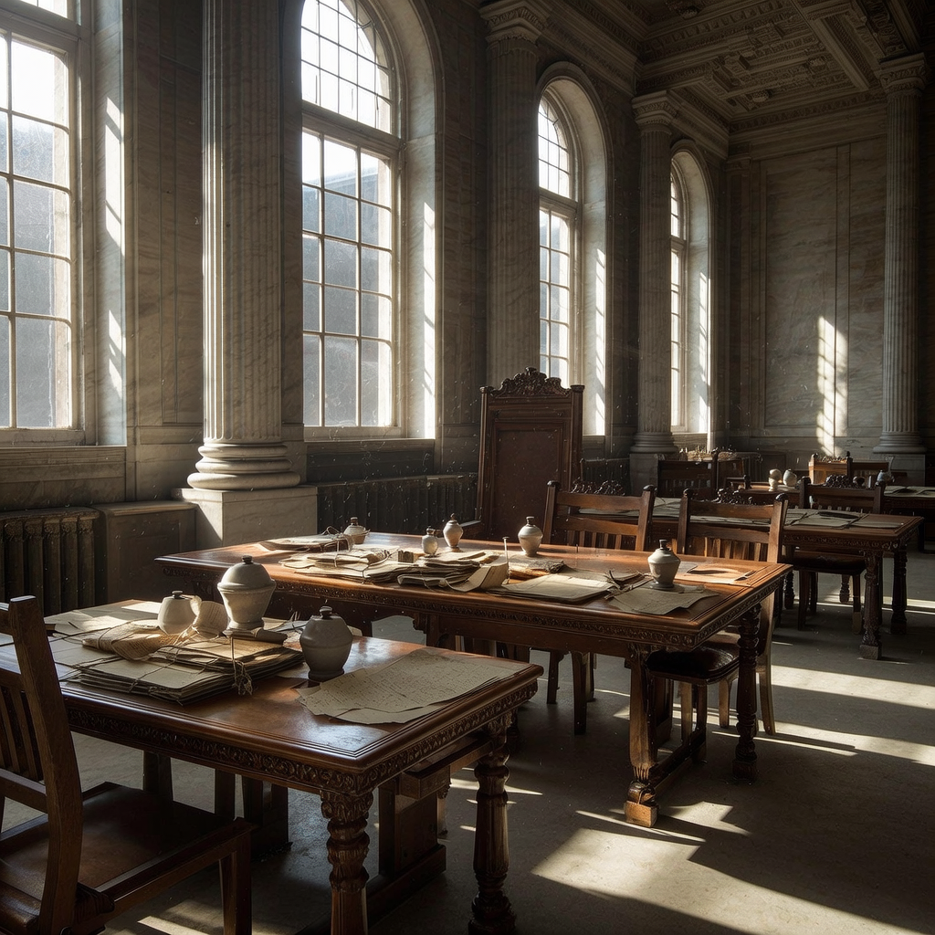 ![empty formal interior, natural lighting through tall windows, wood paneling, institutional architecture, sense of history and permanence, marble columns, high ceilings, formal furniture, muted palette, an abandoned imperial committee room, oak tables layered with undisturbed papers and faded inkwells, sunlight slanting through tall, arched windows at a diagonal, casting long shadows over a vacant speaker’s chair; dust motes float in the still air, illuminating the silence of decisions no longer being made [Bria Fibo] empty formal interior, natural lighting through tall windows, wood paneling, institutional architecture, sense of history and permanence, marble columns, high ceilings, formal furniture, muted palette, an abandoned imperial committee room, oak tables layered with undisturbed papers and faded inkwells, sunlight slanting through tall, arched windows at a diagonal, casting long shadows over a vacant speaker’s chair; dust motes float in the still air, illuminating the silence of decisions no longer being made [Bria Fibo]](https://081x4rbriqin1aej.public.blob.vercel-storage.com/viral-images/98e75546-9cd7-45ae-9283-7439bda1fe6b_viral_2_square.png)