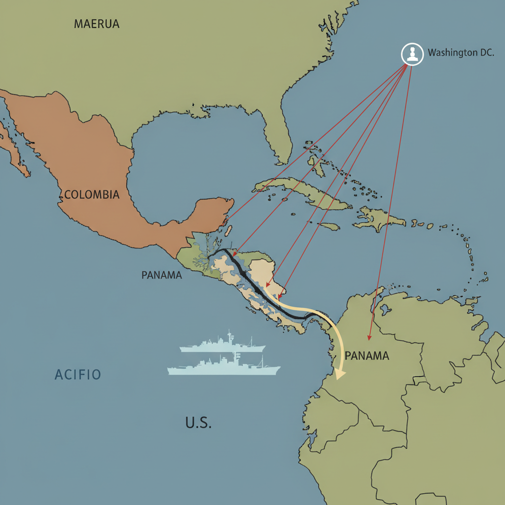![flat color political map, clean cartographic style, muted earth tones, no 3D effects, geographic clarity, professional map illustration, minimal ornamentation, clear typography, restrained color coding, flat 2D map of Central America, clean ink lines with subtle color differentiation between Colombia and Panama, a jagged fissure splitting the isthmus along the canal route, faint silhouette of U.S. warships stationed off the coast, thin red annotation lines radiating from Washington to the rupture point, pale gold arrow tracing proposed canal transit—light from the north casting sharp, angular shadows across the divide, atmosphere of quiet imposition [Nano Banana] flat color political map, clean cartographic style, muted earth tones, no 3D effects, geographic clarity, professional map illustration, minimal ornamentation, clear typography, restrained color coding, flat 2D map of Central America, clean ink lines with subtle color differentiation between Colombia and Panama, a jagged fissure splitting the isthmus along the canal route, faint silhouette of U.S. warships stationed off the coast, thin red annotation lines radiating from Washington to the rupture point, pale gold arrow tracing proposed canal transit—light from the north casting sharp, angular shadows across the divide, atmosphere of quiet imposition [Nano Banana]](https://081x4rbriqin1aej.public.blob.vercel-storage.com/viral-images/c7efe12d-5ce8-4c95-8c2b-e720c542a534_viral_1_square.png)